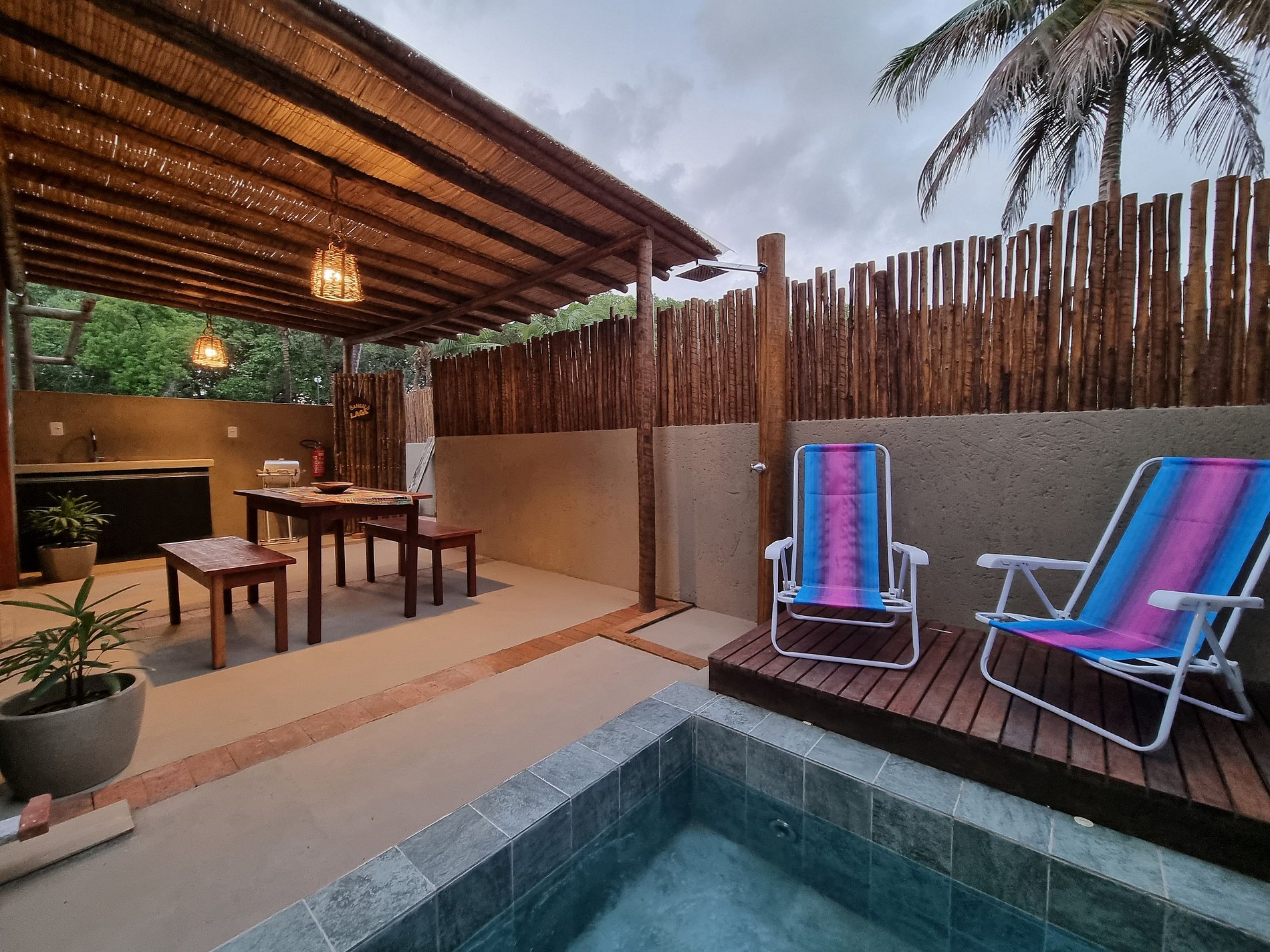 Nossa aréa é formada por 3 bangalôs, cada um preparado para acomodar 4 pessoas, localizado há 900m da praia de tatuamunha e 300m do ICMBIO costa dos Corais conhecido refúgio dos peixes boi. Cada bangalô tem 2 suites, cozinha totalmente equipada, um charmoso mezanino de madeira com acesso pela escada interna. Na area externa piscina, alguns com saúna e espaço gourmet com churrasqueira. As margens do manguezal, entre o mar e o rio, estar a Vila Manguezal, na charmosa rota ecológica dos Milagres.