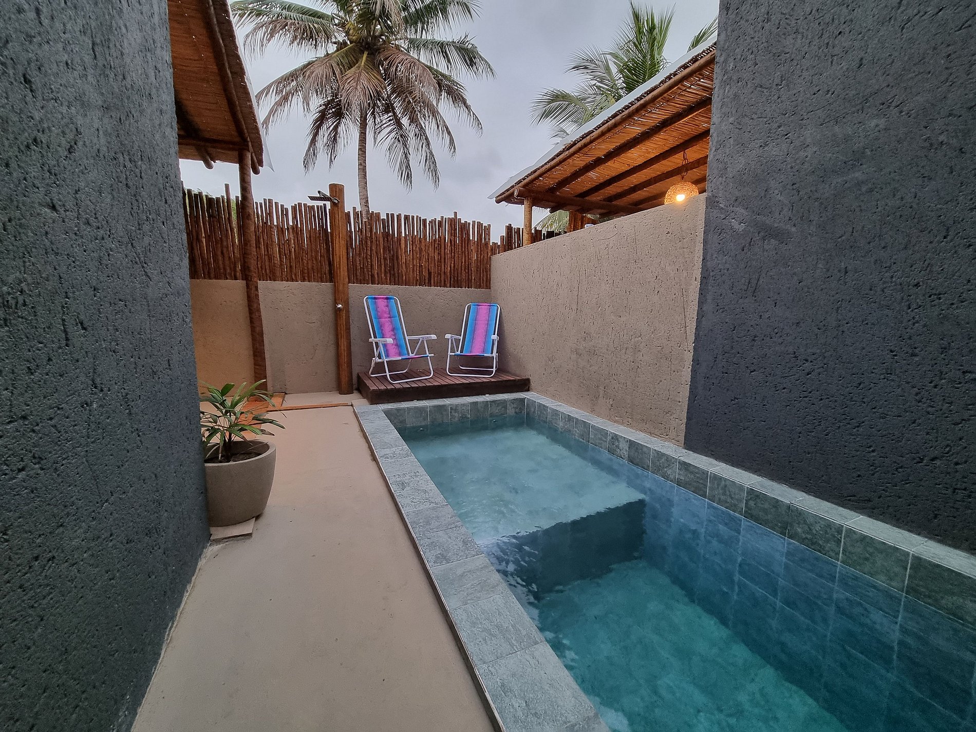 Nossa aréa é formada por 3 bangalôs, cada um preparado para acomodar 4 pessoas, localizado há 900m da praia de tatuamunha e 300m do ICMBIO costa dos Corais conhecido refúgio dos peixes boi. Cada bangalô tem 2 suites, cozinha totalmente equipada, um charmoso mezanino de madeira com acesso pela escada interna. Na area externa piscina, alguns com saúna e espaço gourmet com churrasqueira. As margens do manguezal, entre o mar e o rio, estar a Vila Manguezal, na charmosa rota ecológica dos Milagres.